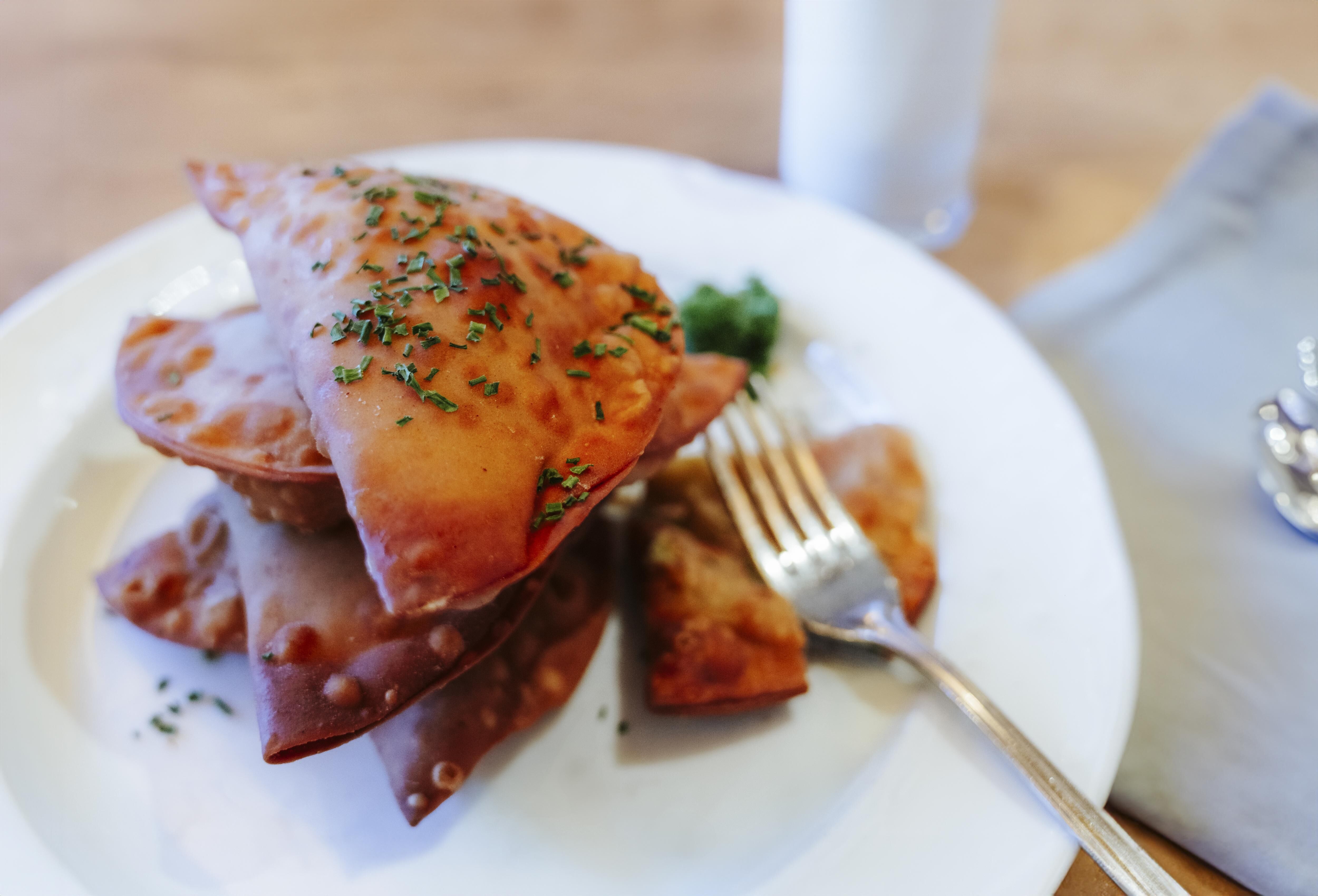 Til fyldet skrælles de kogte kartofler og presses gennem en sigte. Bland finthakket løg, purløg, kvark og ost i, og bland med lidt mælk til en cremet masse. Smag til med salt.