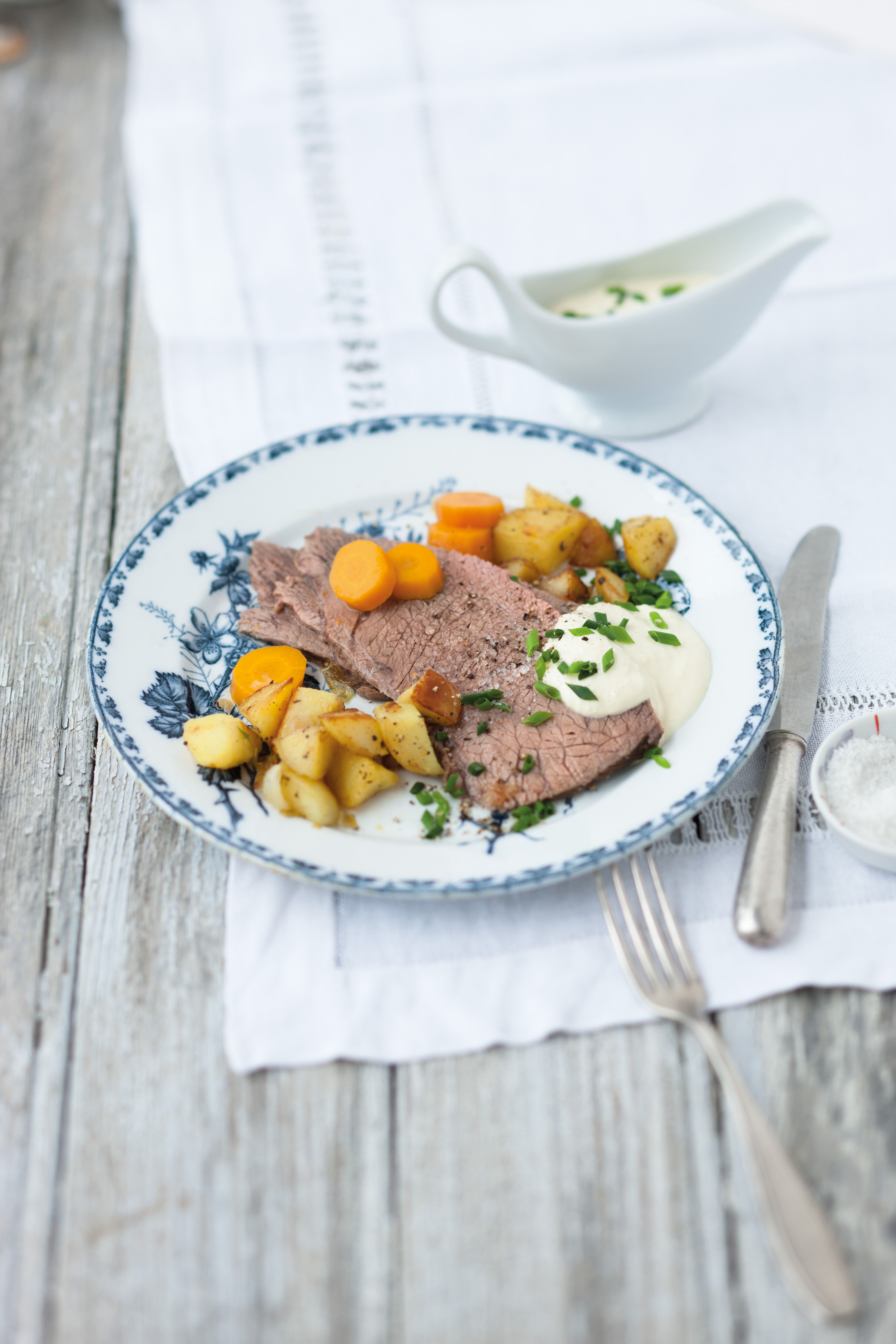 Mit diesem Rezept schmeckt und gelingt der Tafelspitz wie das Original aus Wien. Er wird klassisch mit Rösterdäpfel und Schnittlauchsauce serviert.